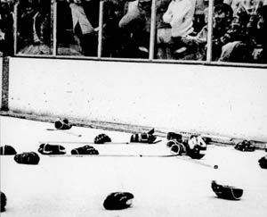 Nötig hierzu ist eigentlich nicht sehr viel - außer etwas Enthusiasmus für Eishockey, und der "Drang", diesen anderen zu vermitteln. Auf eine objektive Sichtweise wird bei ÜBERTRIEBENE HÄRTE explizit wenig Wert gelegt. Damit soll sich die sogenannte Fachpresse beschäftigen, die oft genug daran scheitert - Verlagsleichen pflastern ihren Weg. ÜBERTRIEBENE HÄRTE ist - das soll bereits der Name signalisieren - von Grund auf subjektiv, auf die Sicht des "Gegners" wird erstmal nicht so sehr eingegangen. Das kann und soll er selbst machen. Und: Eine Zwei-Minuten-Strafe wird von ÜBERTRIEBENE HÄRTE gern kassiert, denn auf dem Sünderbänkchen kommen oft die besten Ideen. Wenn Euch an Eurem Team etwas liegt, dann stellt es in ÜBERTRIEBENE HÄRTE vor. Sonst macht's womöglich ein Intimfeind vom Derby-Rivalen, der die Schattenseiten Eurer Stadt und Eurer Mannschaft schonungslos anprangern wird. Beschweren ist also zwecklos - Ihr seid hiermit gewarnt! Was könnte alles behandelt werden in ÜBERTRIEBENE HÄRTE? Wonach Euch der Sinn ist! Zwar werden wir die ausführliche Statistik der Fachpresse überlassen müssen - dürfte zu unaktuell sein, da an einen wöchentlichen Erscheinungstermin von ÜBERTRIEBENE HÄRTE nicht zu denken ist. Aber das ist ja auch nicht sonderlich unterhaltend, diese andauernden Sp -T -A-P-Str-Tabellen. Viel lieber und öfter wird ÜBERTRIEBENE HÄRTE berichten von: - Gerüchten ("Münchner Lizenz nach Kaufbeuren verschenkt") - Skandalen ("Match-Strafe nach Wechselfehler") - verbalen Randalen (" www.baeregrabe.ch schlägt zurück: Ein Livebericht aus Lugano") - authentischen Erlebnisberichten aus fremden Welten ("Ein Hai an der Brehmstraße") - den neuesten Hits in den Stadien ("HANSON BROTHERS endlich auf Deutschland-Tour?") - laß' Dir selbst was einfallen oder schick' wenigstens Photos Wer nicht kooperiert, muß mit (ver)öffentlich(t)er Schande rechnen - natürlich in ÜBERTRIEBENE HÄRTE. Die Nullnummer erschien zum Onliner-Inliner-Spiel im Curt-Frenzel-Stadion in Augsburg zwischen dem BARONS FAN TEAM MÜNCHEN und den BLACK PANTHER ONLINERN AUGSBURG am 14. Juli 2001. Aus diesem Anlaß verstand es sich von selbst, daß die Münchener die ersten waren, die etwas ÜBERTRIEBENE HÄRTE abkriegen. Es gab Angebote, für ÜBERTRIEBENE HÄRTE etwas zu schreiben - bisher ohne größere Reaktion. Wie oben angedroht, folgt die veröffentlichte Schande auf den nächsten Seiten von ÜBERTRIEBENE HÄRTE. Viel Spaß! Soweit das Vorwort der Null-Nummer. Den Rest seht Ihr hier. Natürlich sind (verbale) Fummeleien, von mir aus auch unter der Gürtellinie, erlaubt bei ÜBERTRIEBENE HÄRTE, sollte aber derber hingelangt werden (verbale Tritte, in den Unterleib oder sonstwohin), ergeht eine Matchstrafe: Ab damit ins Forum auf www.del.org oder als Leserbrief an die EishockeyNEWS - da werden Sie dann geholfen ;) Was "geht" bei ÜBERTRIEBENE HÄRTE, ist dagegen z.B. der Literatur-Thread und das meiste auf www.baeregrabe.ch . By the way: Hat jemand Kontakte nach Österreich, in andere Ligen etc.? Internationalität im Eishockey ist ja eigentlich eine Selbstverständlichkeit, warum nicht auch bei ÜBERTRIEBENE HÄRTE? Und sonst: Wer Ideen hat, egal ob technisch, literarisch, (photo-)graphisch, logistisch, internettisch, sponsoristisch (www.star-video-media.de in der Ulmer Straße. Große Auswahl an Originalfilmen. Haben u.a. auch SLAPSHOT im Programm - ungekürzt!), der soll sich doch einfach im Panther-Forum mitteilen oder mir mailen: slapshot66@gmx.net Und: Für ÜBERTRIEBENE HÄRTE ist es egal, an welchem Loser-Club Dein Herz hängt ... Außer Riessersee |